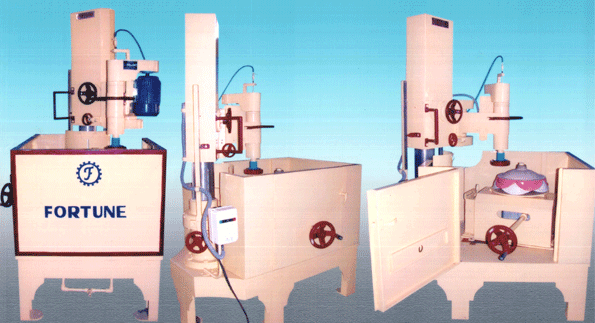 It is specially designed attachment on which the oval pan / round pan will be fitted in reverse position, then the rotation of attachment wheel provide circulation motion of grinding surface with wheel as per profile of wares.